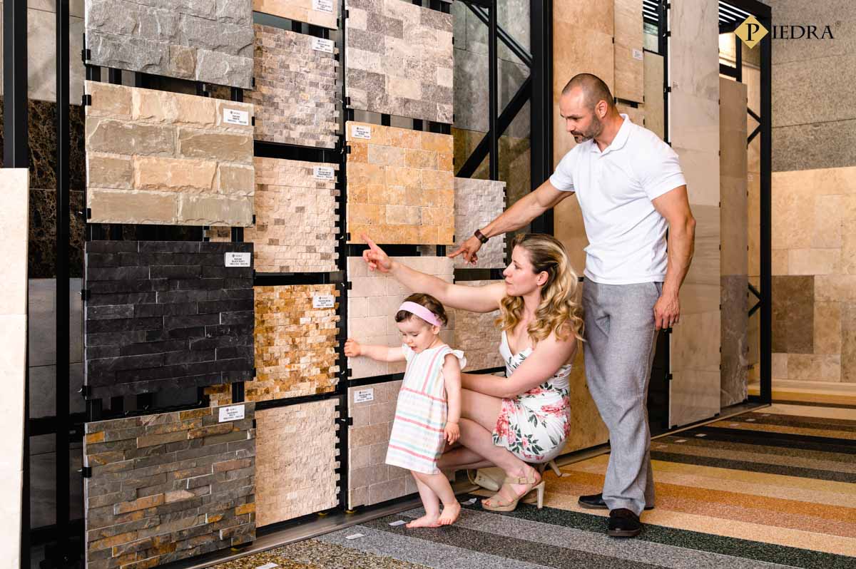 Přírodní kamenný obklad je nejčastěji z travertinu, křemene, žuly, ruly, pískovce a mramoru.