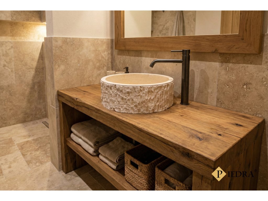 Přírodní skvost: Umyvadlo z béžového travertinu