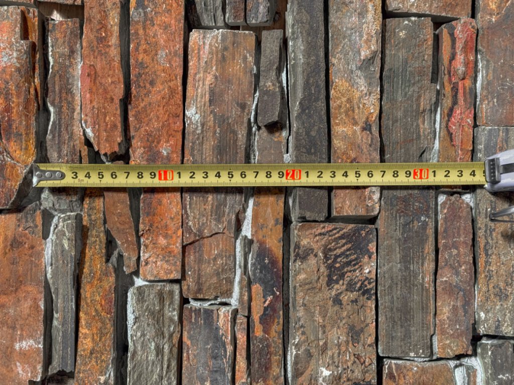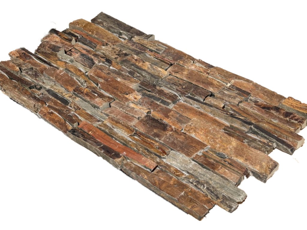 amenný obklad na fasádu StoneWall hnědy, tloušťka 2,5-3,5 cm, velikost síťky s cementovou výplní 15x55 cm skládaný obklad na síťce ve tvaru Z, výška jednotlivých kusu cca 5 až 10 cm, délka volná.