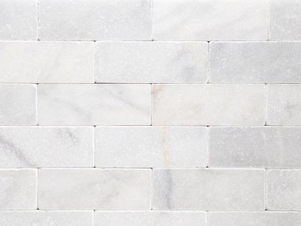 Kamenný obklad mramor bílý, přírodní kámen, pravidelný tvar, na síťce, 5x10x2 cm
