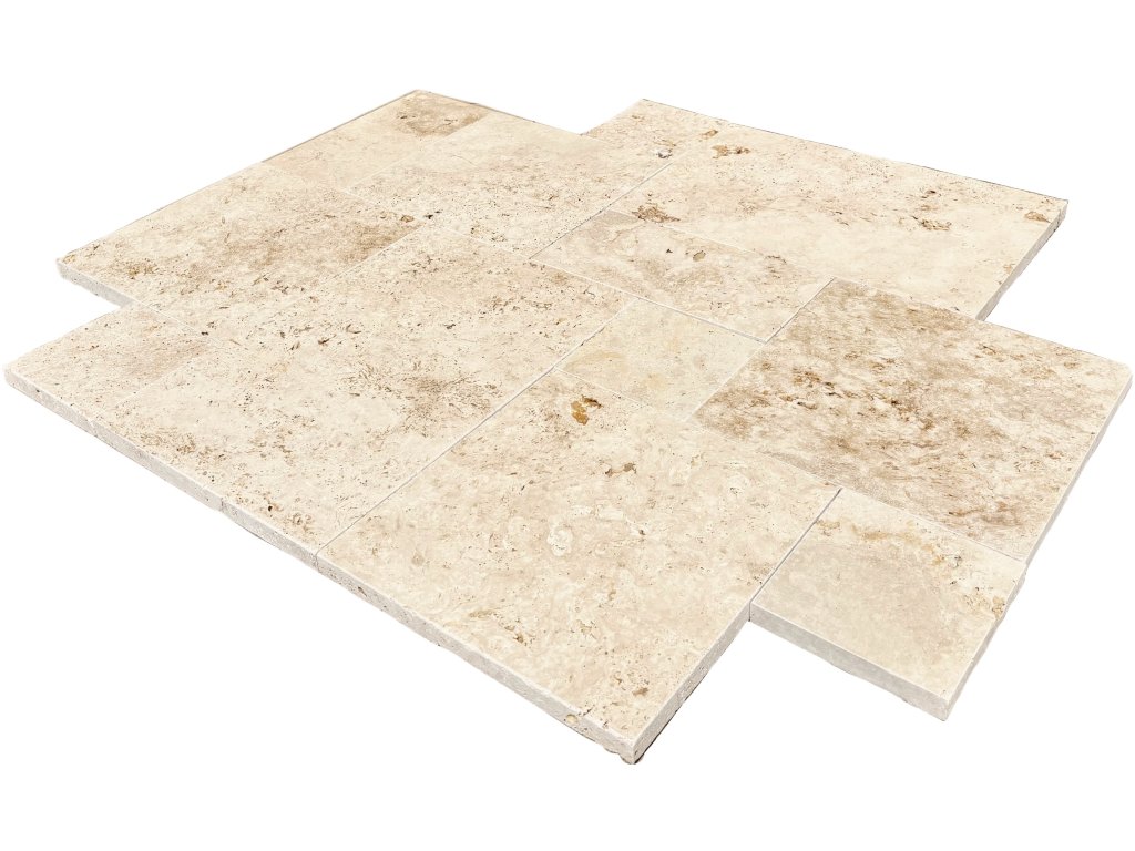 Přírodní travertinová dlažba Cappuccino, netmelena, kartáčovaná, francouzský styl - 4 rozměry, tloušťka 3 cm.